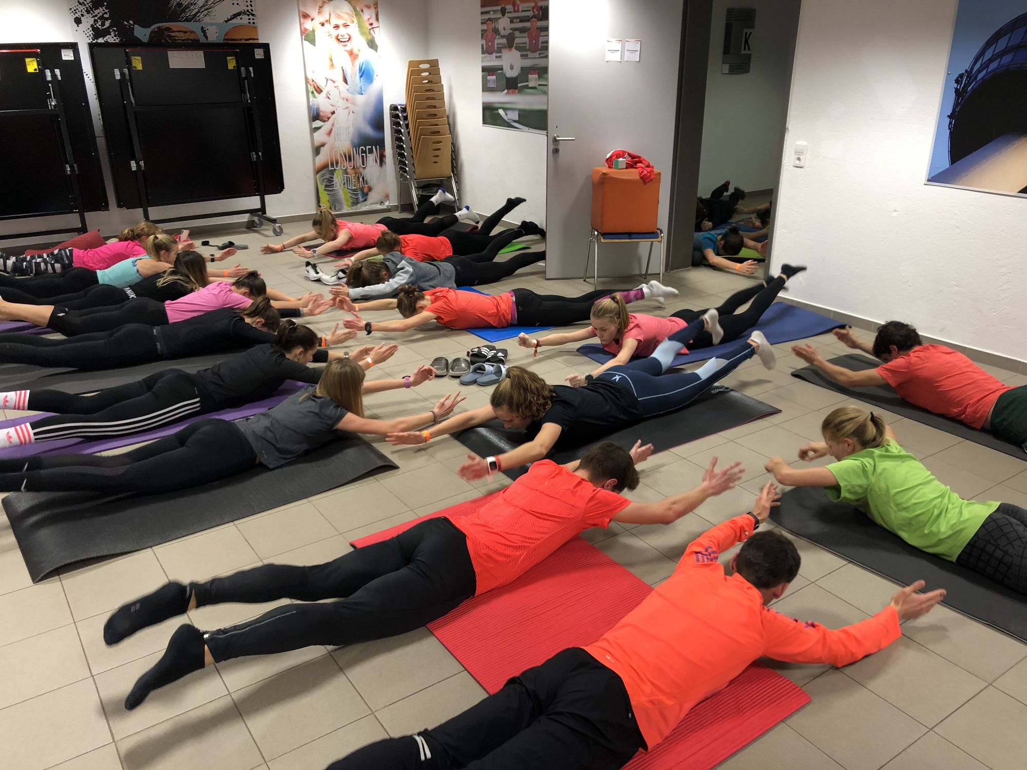 Aber nicht nur Dauer- und Tempoläufe werden hier trainiert. Am Freitagnachmittag ging es für eine ausgiebige Athletik-Einheit in die Leichtathletik-Halle, bei der die Jungs schwerpunktmäßig an ihrer Beweglichkeit arbeiteten und die Mädels hauptsächlich Kräftigungsübungen durchführten.