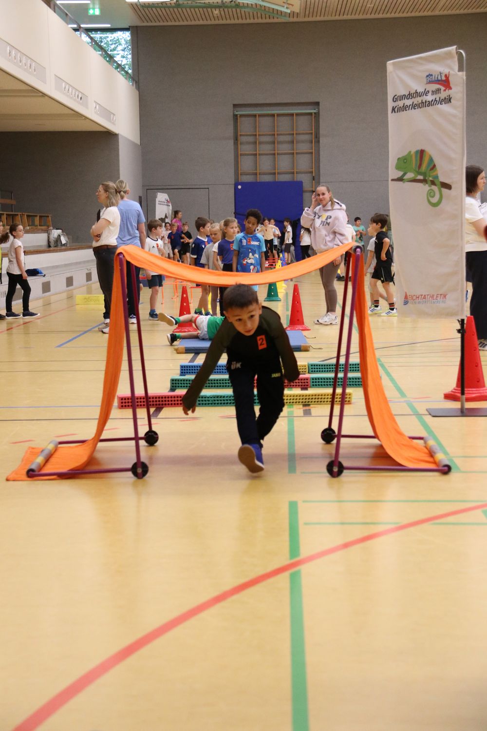 In Geislingen am 05.06. durften insgesamt 11 Klassen mit 250 Schüler:innen die acht Grundschule-trifft-Kinderleichtathletik-Stationen ausprobieren und neue Bewegungsformen kennenlernen. Die Kinder waren begeistert und motiviert und wurden zusätzlich durch die Topathletin der TG Geislingen angespornt. Lara Kneifel zeigte den Kindern, wie schnell man über die Hürden laufen kann, und wurde mit riesigem Applaus und lauten Jubel-Schreien belohnt.