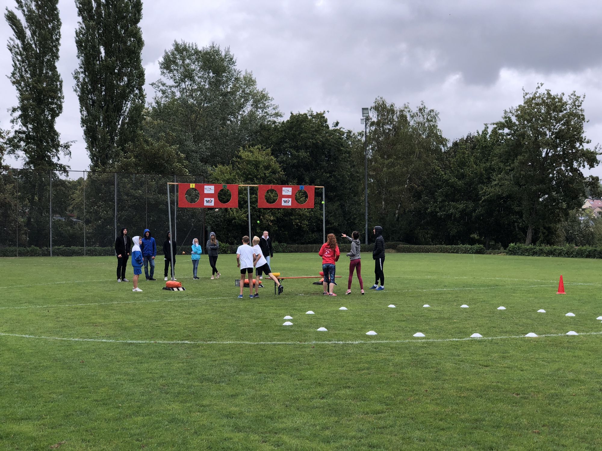 Auch bei der Auf- und Abbaustaffel kam wie schon so oft bei "WLV Kinderleicht-Athletik VOR ORT" viel Kreativität mit ins Spiel. Anstatt die bunten Stapelsteine einfach per Hand zum markierten Ziel zu befördern gab es zahlreiche Varianten, wie die Stapelsteine transportiert werden mussten: Mal zu zweit im Team oder auch mal den Stapelstein auf den Kopf gesetzt- am Ende kamen immer alle zum Ziel und es wurde viel gelacht.